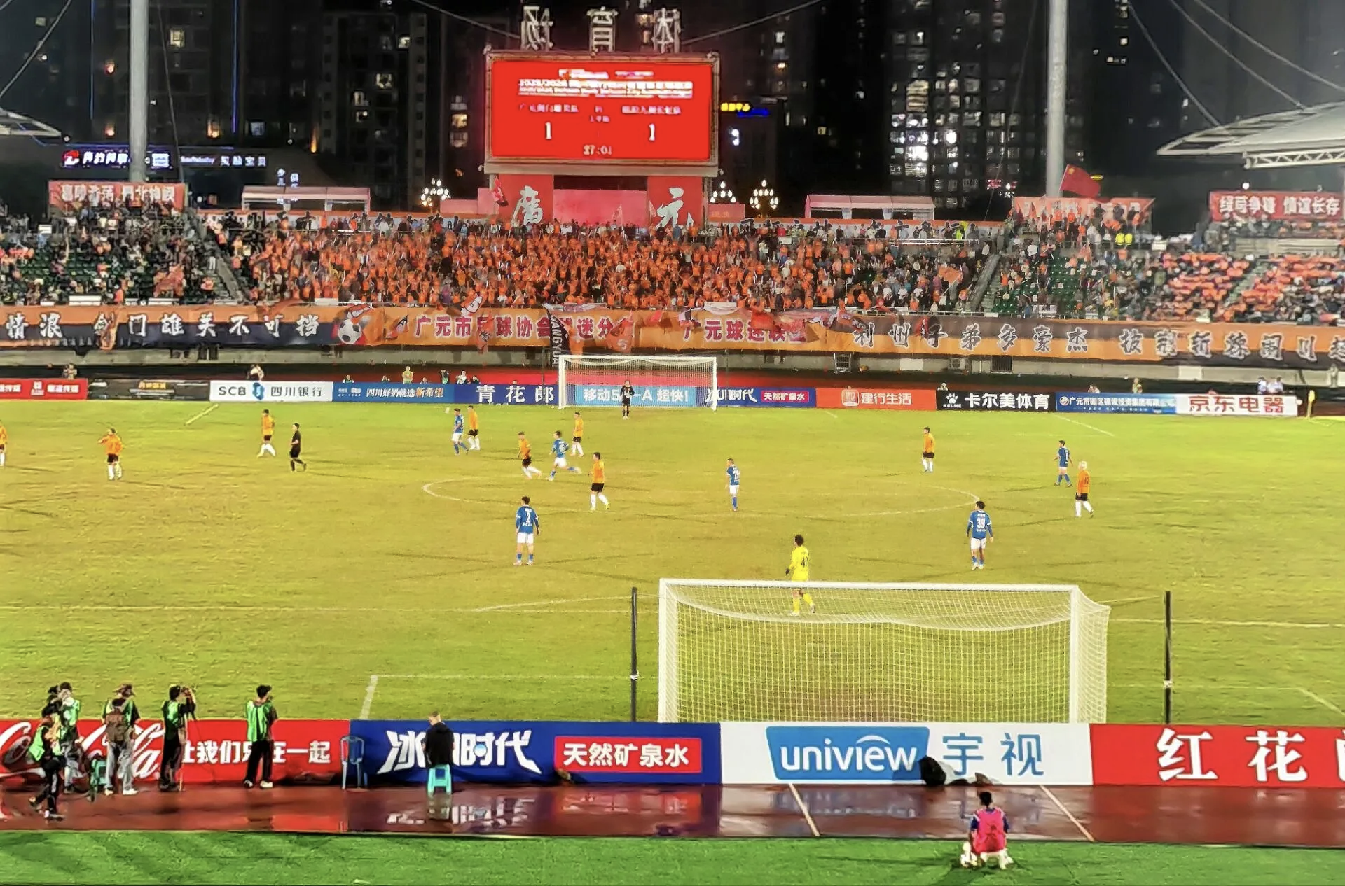 9月27日晚,“川超”川北赛区第一轮比赛精彩上演。广元剑门雄关队坐镇主场,迎来绵阳九洲长虹队的挑战。上半场16分钟,绵阳队取得一粒进球。两分钟后,主队扳平比赛。最终经过95分钟激烈角逐,双方以1∶1的比分握手言和。